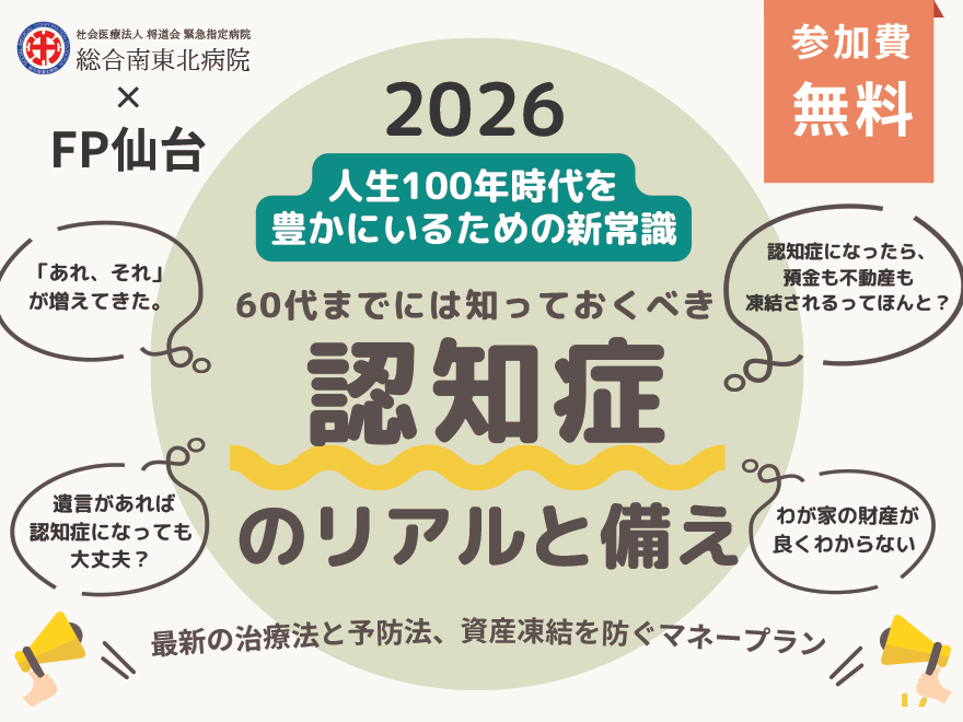 「人生100年時代」を豊かに過ごすための新常識。認知症の現状や最新治療、食事による予防法を専門医が解説します。さらにFPが資産凍結を防ぐマネープランや失敗しない相続の秘訣を伝授。参加費無料、60代までに知っておきたい備えが満載です。